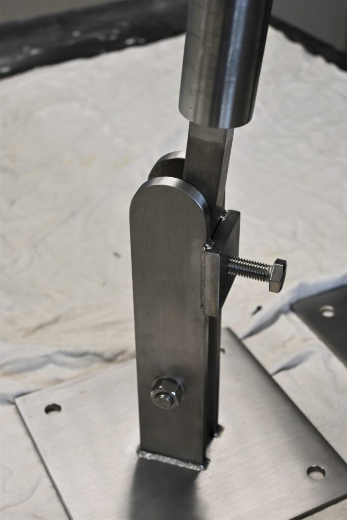 für Stützen mit Kippmechanik und tiefenverstellbarer Wandbefestigungs-Elemente aus Edelstahl