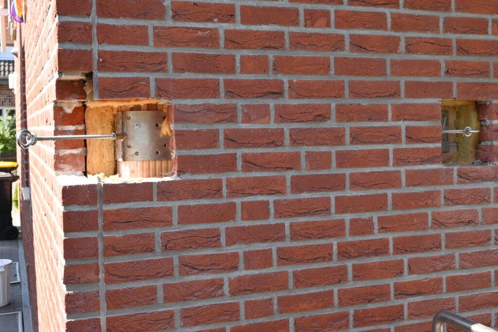 Durch die auftretenden Zugkräfte (Wind- und Schneelasten) können die Wandanker nicht an der Vormauerschale montiert werden