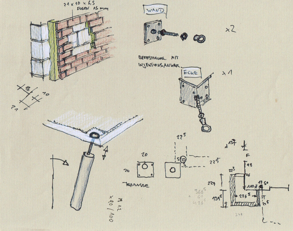 >> vorläufige Montage der Wandanker