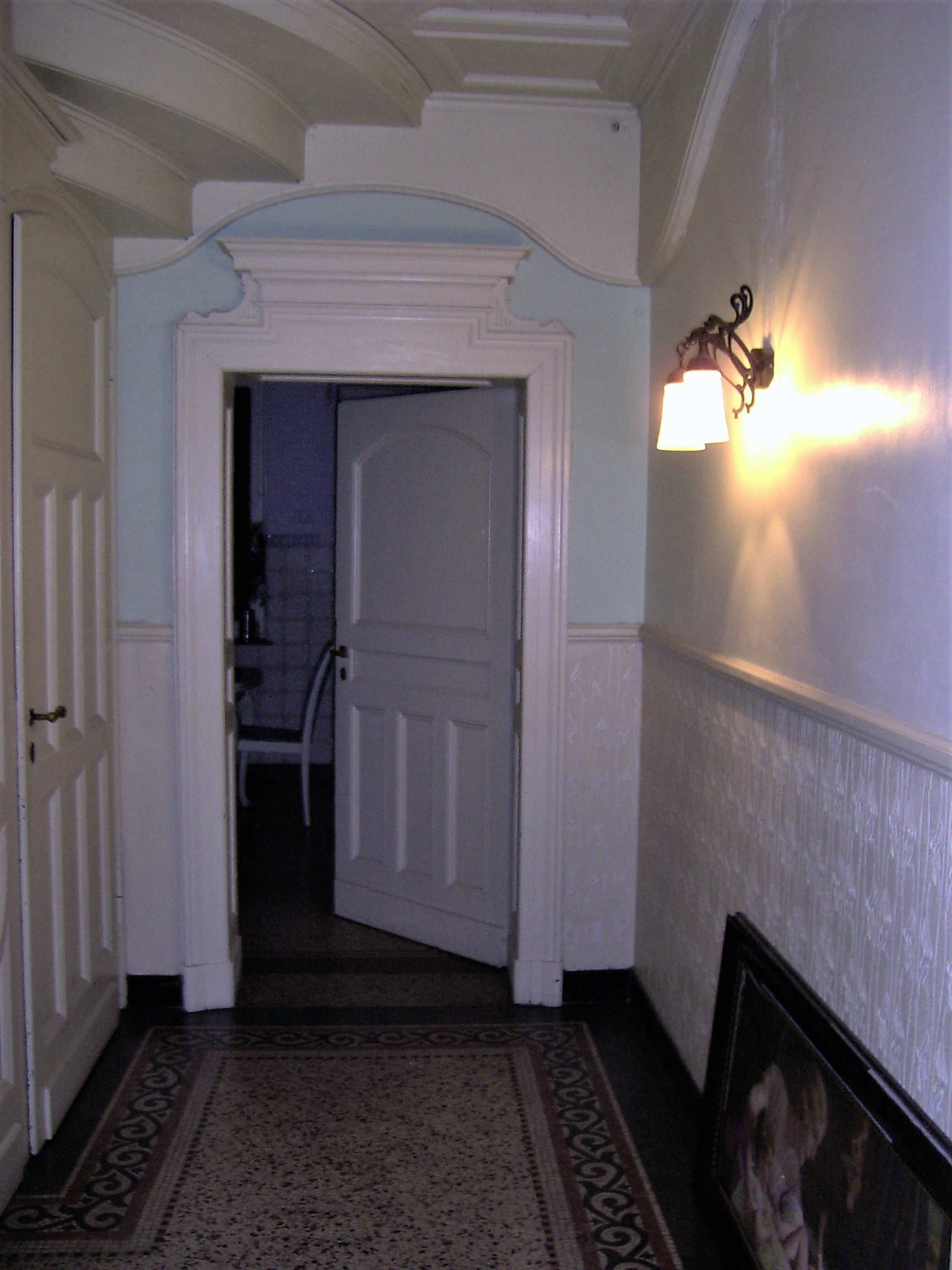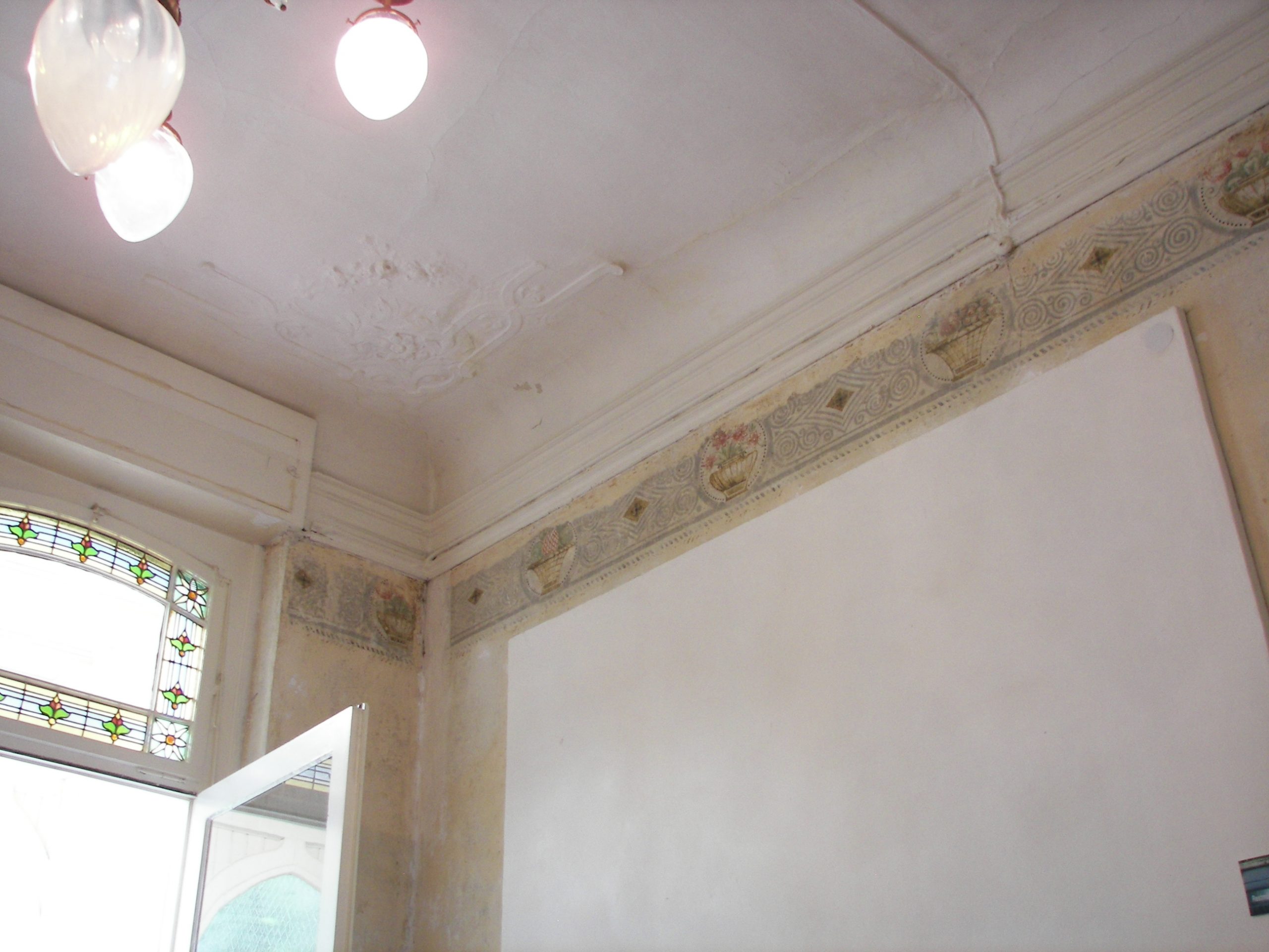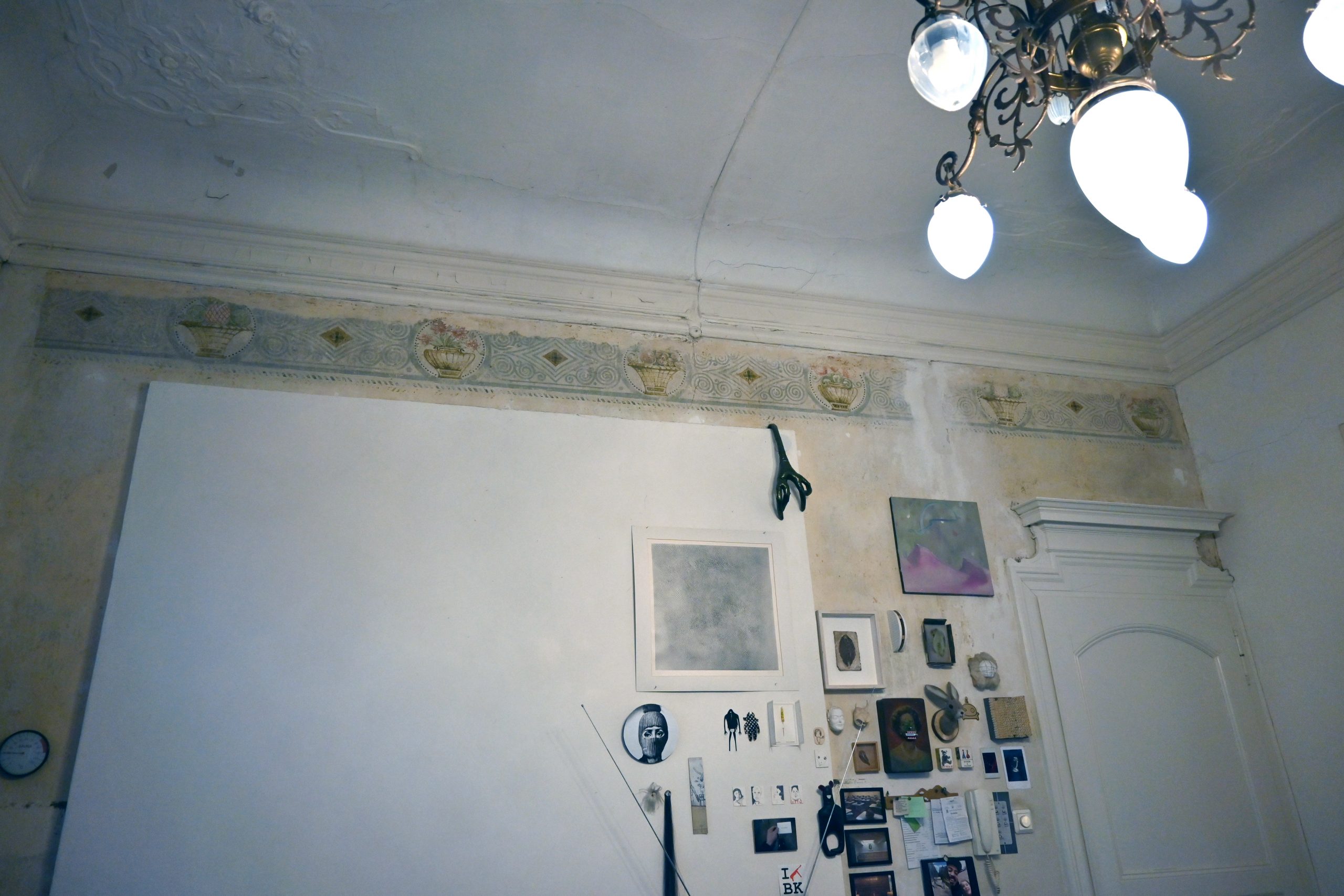 Die Raumwände wurden behutsam gereinigt, die Stukk- und Wandmalereien aus der Bauzeit konserviert und sichtbar belassen.