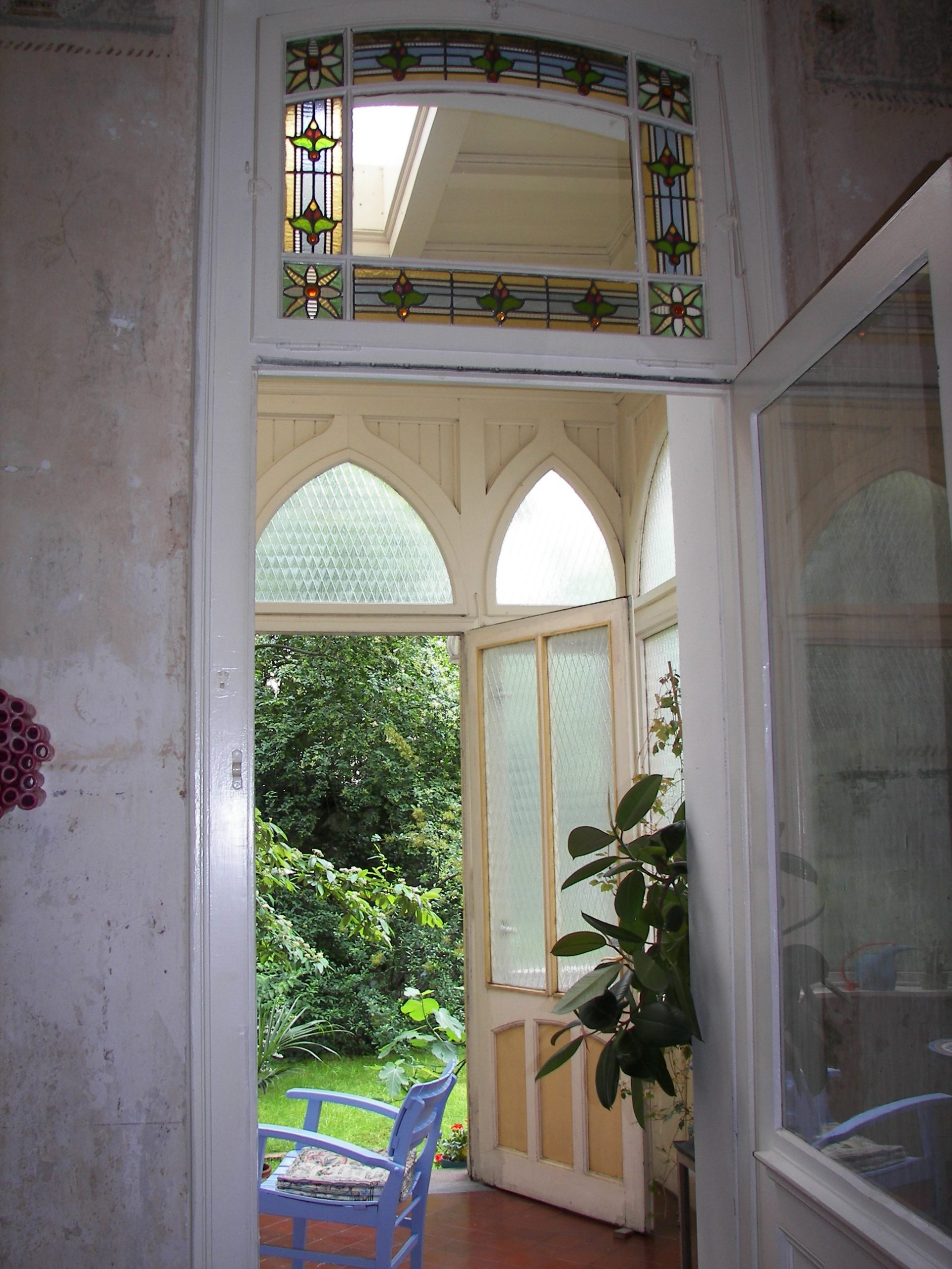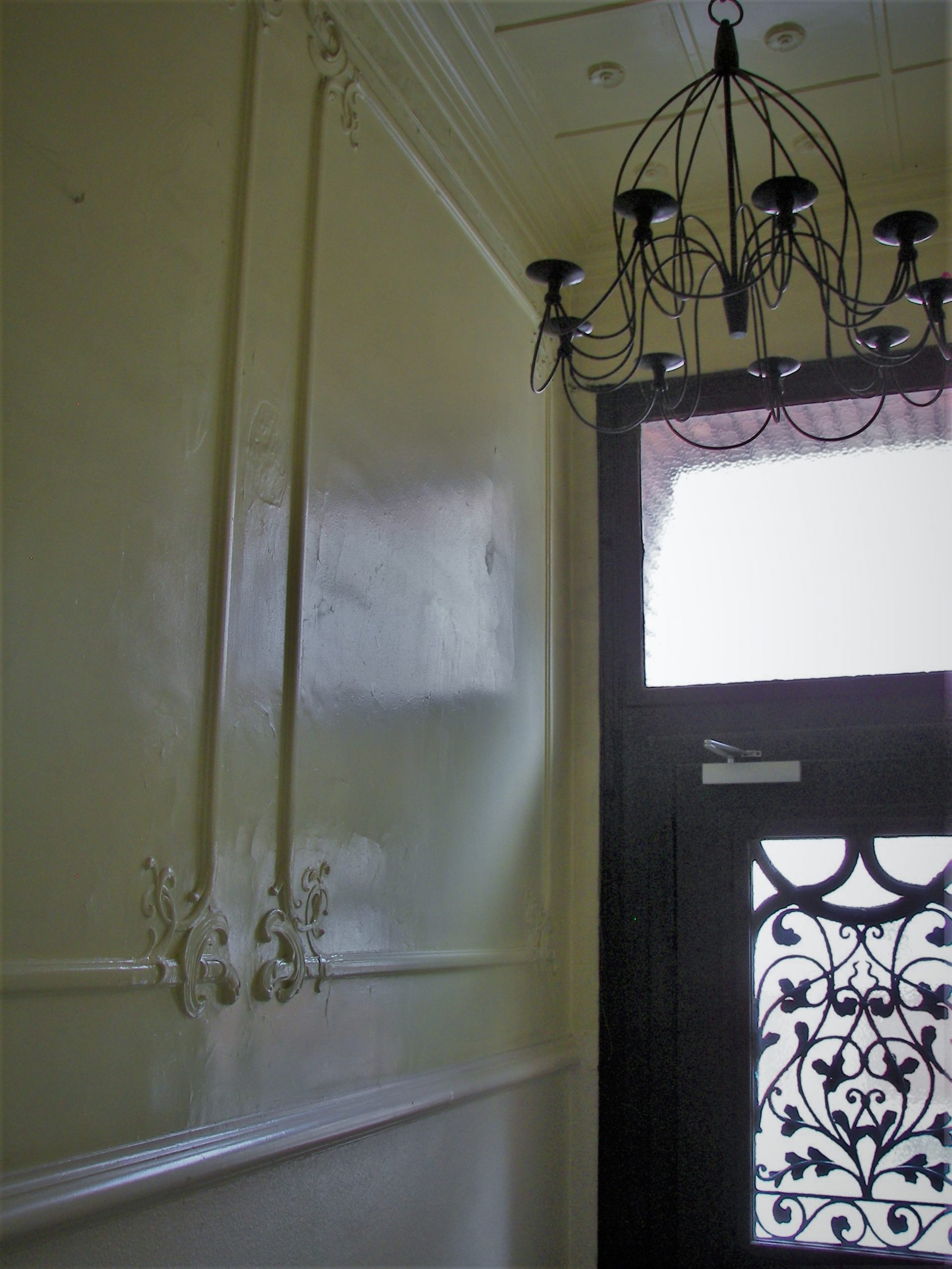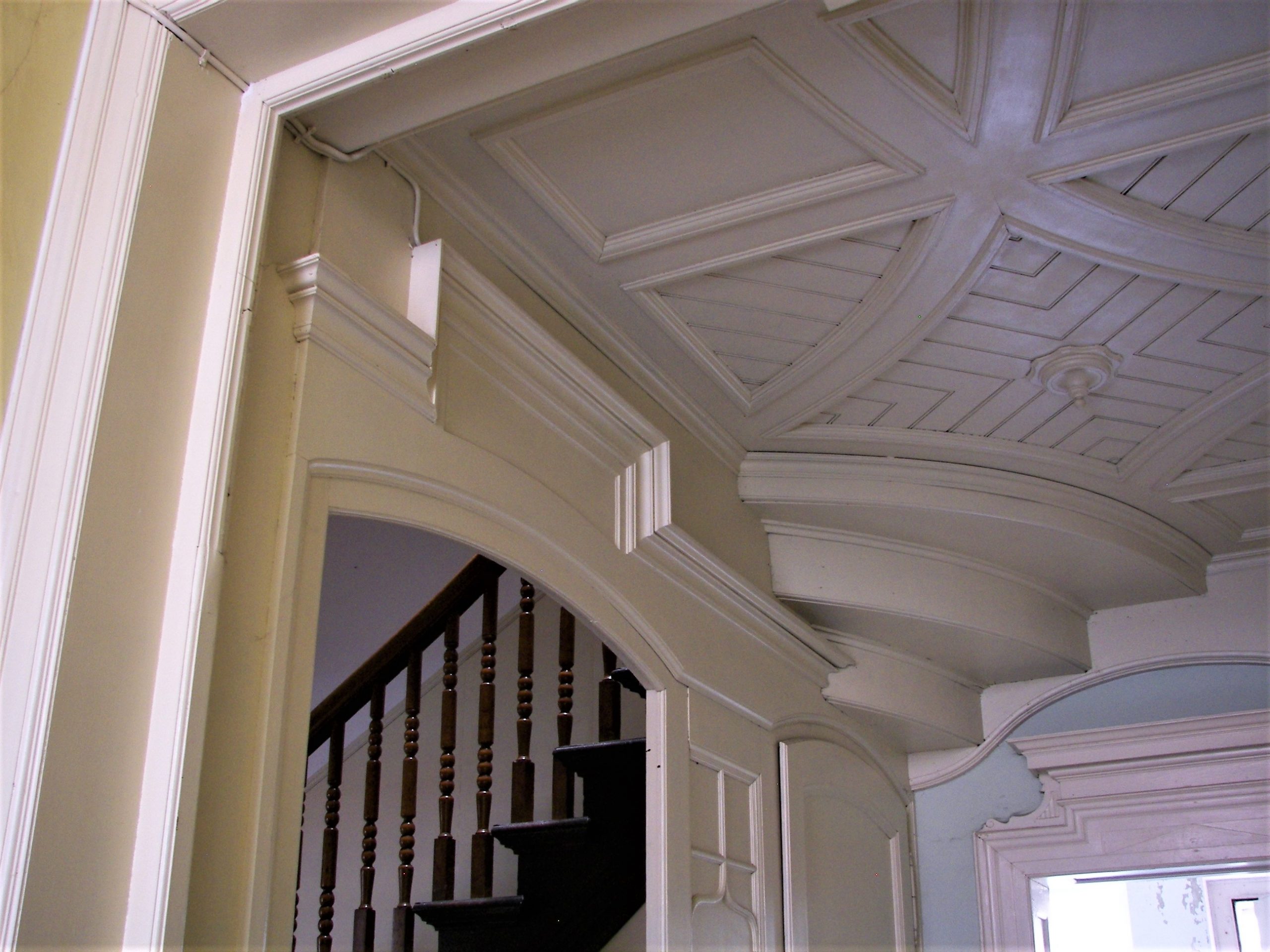 Die Raumwände wurden behutsam gereinigt, die Stukk- und Wandmalereien aus der Bauzeit konserviert und sichtbar belassen.