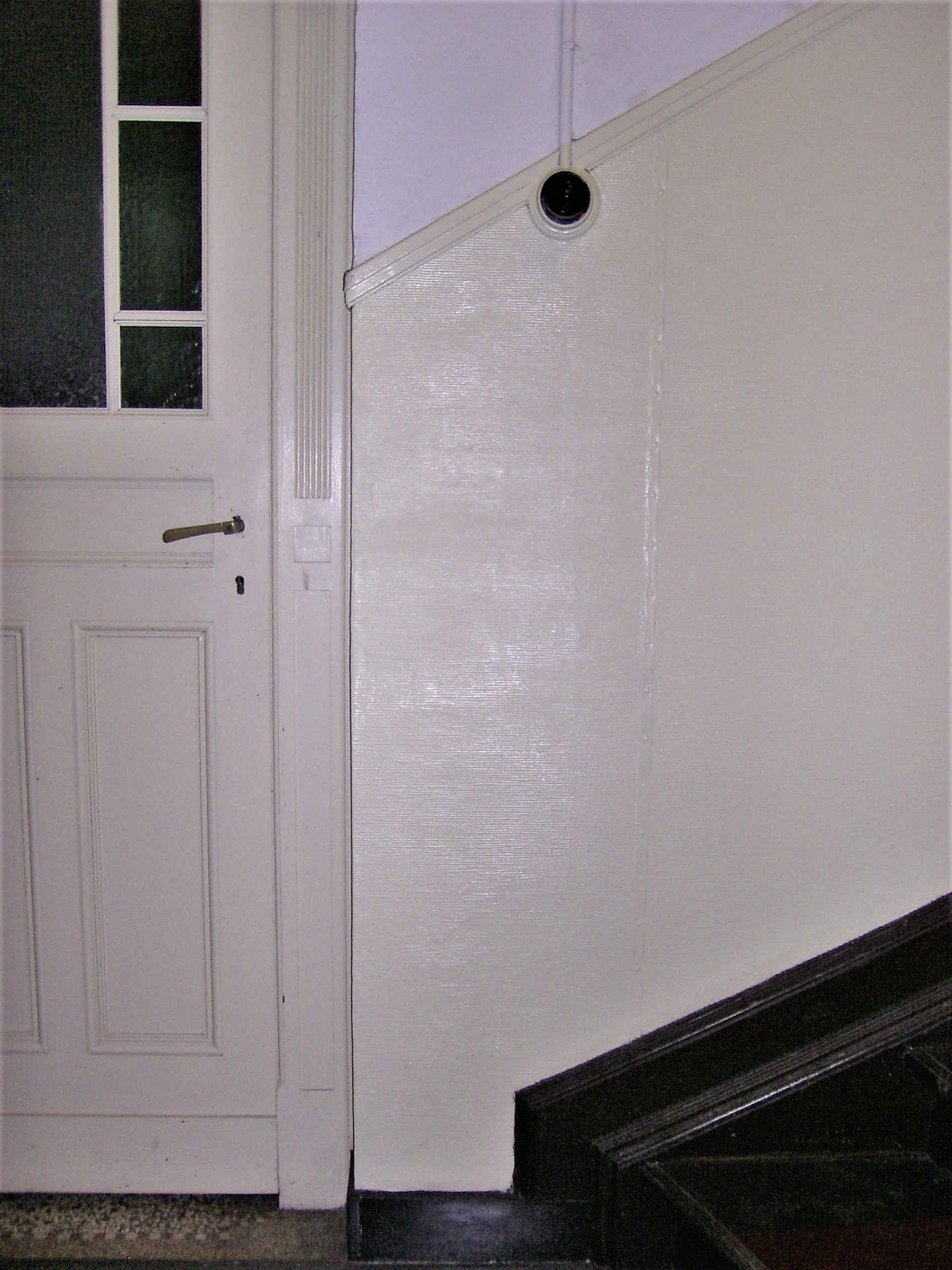 In einigen Wohn- und Atelierräumen im Erdgeschoss habe ich Wandheizungsregister aus Kupfer verlegen lassen (Firma Raabe, Duisburg) und diese großflächig mit Lehm verputzt. Die Entlüftung ist in einer kaum sichtbaren Unterputzdose realisiert.