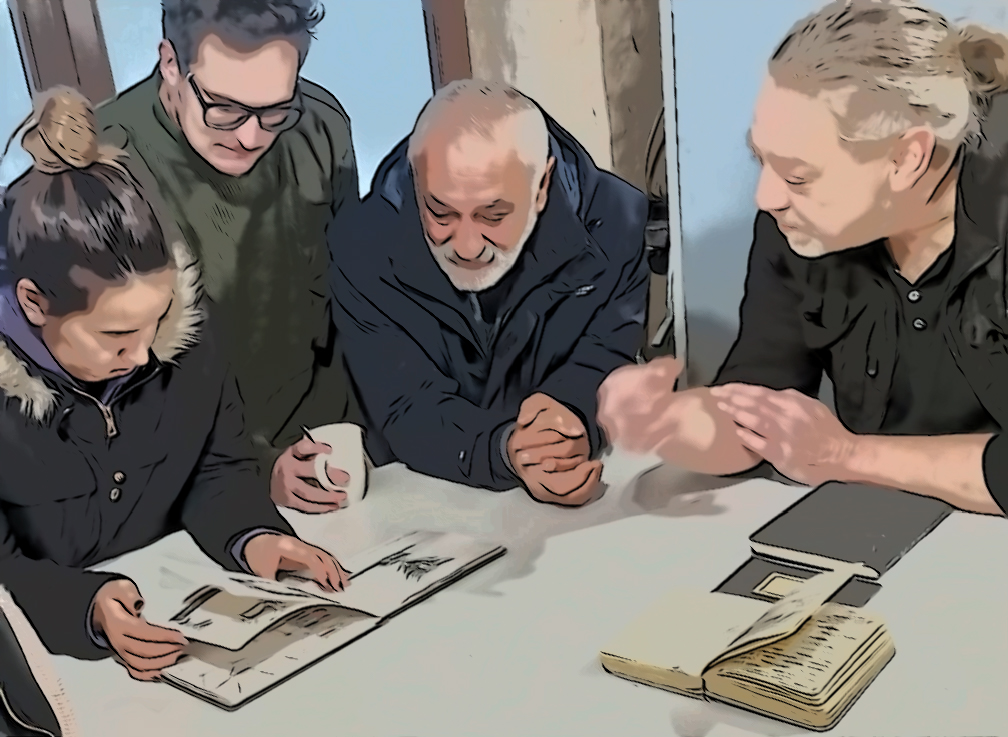 Die Teilnehmer bekommen Einblick in zahlreiche Skizzenbücher des Kursleiters (von reinen Notizbüchern bis hin zu künstlerisch gestalteten Exemplaren).