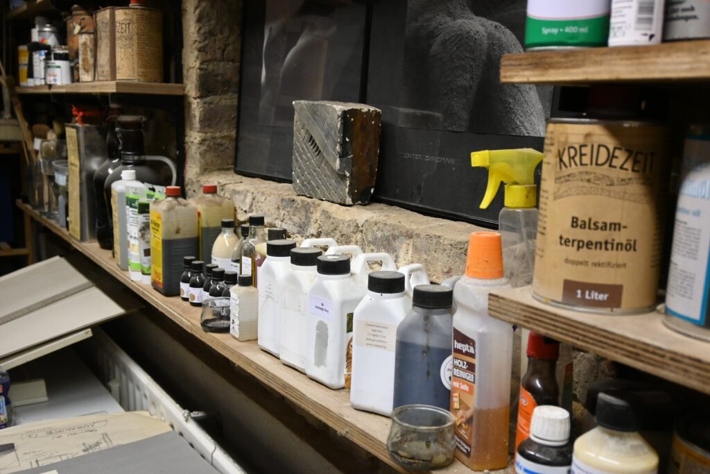 Jeder Teilnehmer kann die Farben selbst mischen und Proben auf Holz und Papier herstellen (und natürlich mitnehmen).