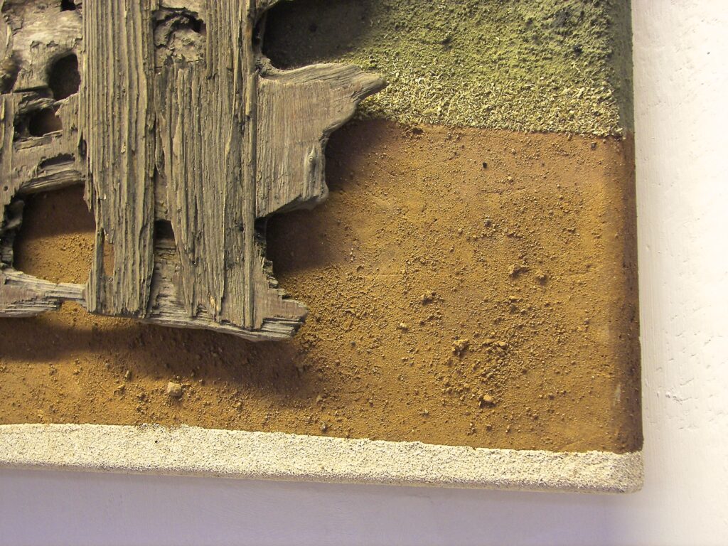 natural pigments, dried moss, on OSB