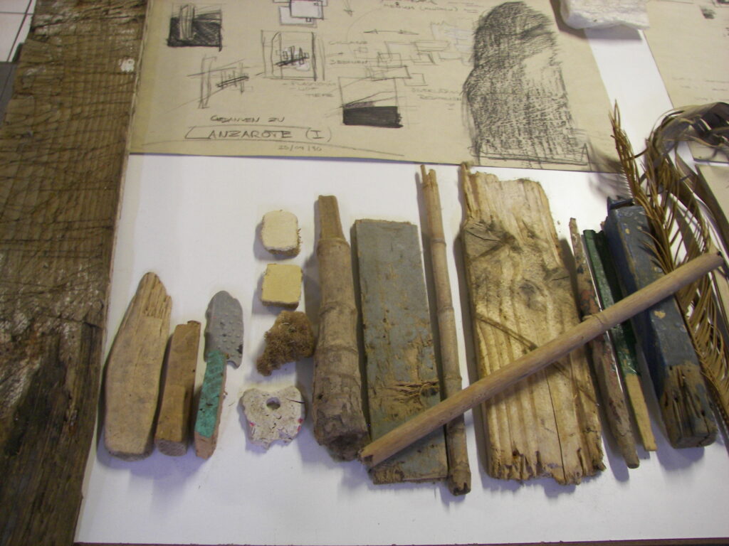 Vulcano ashes, lavastones, sands, and beach salvages from Lanzarote