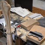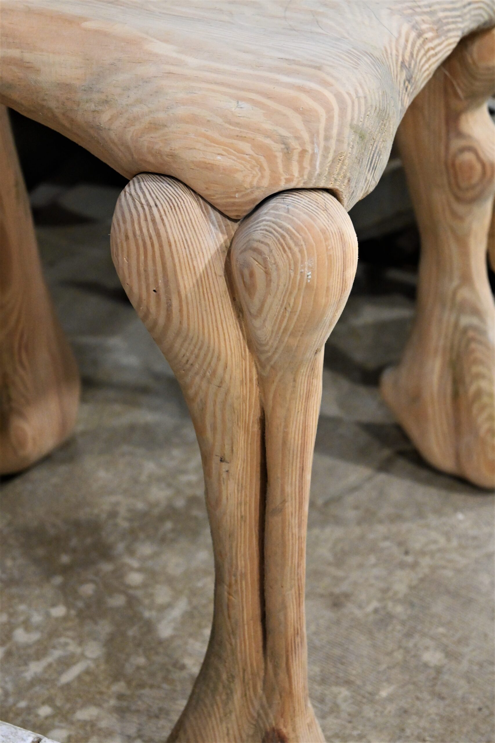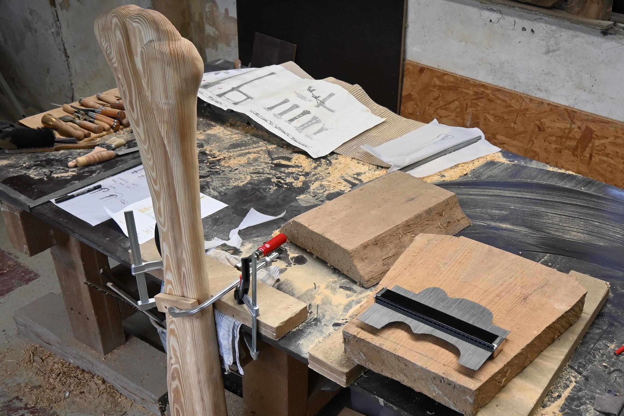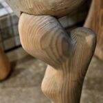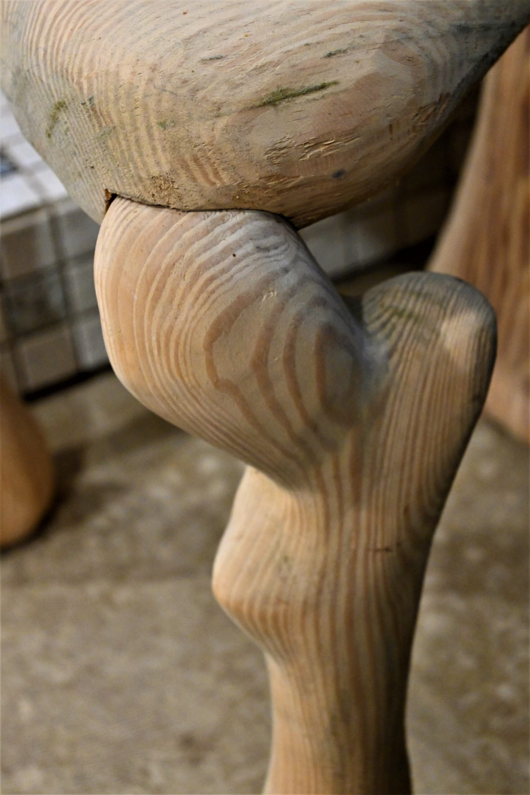 Bau des ersten Stuhles – "Bone Chair" Derzeit in Arbeit –Galerie wird weitergführt Inspiration Grobes Erarbeiten der Form Bildhauen mit der Flex Pinienholz, Feinschliff und gebürstet Loses Zusammenfügen der Teile Ausarbeiten der "Gelenke" Ausarbeiten der "Gelenke"
