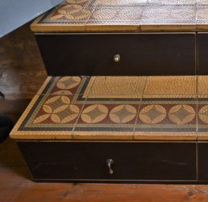 Stahlgerüst, Siebdruckplatte, historische Bodenfliesen aus Abriss (geölt),