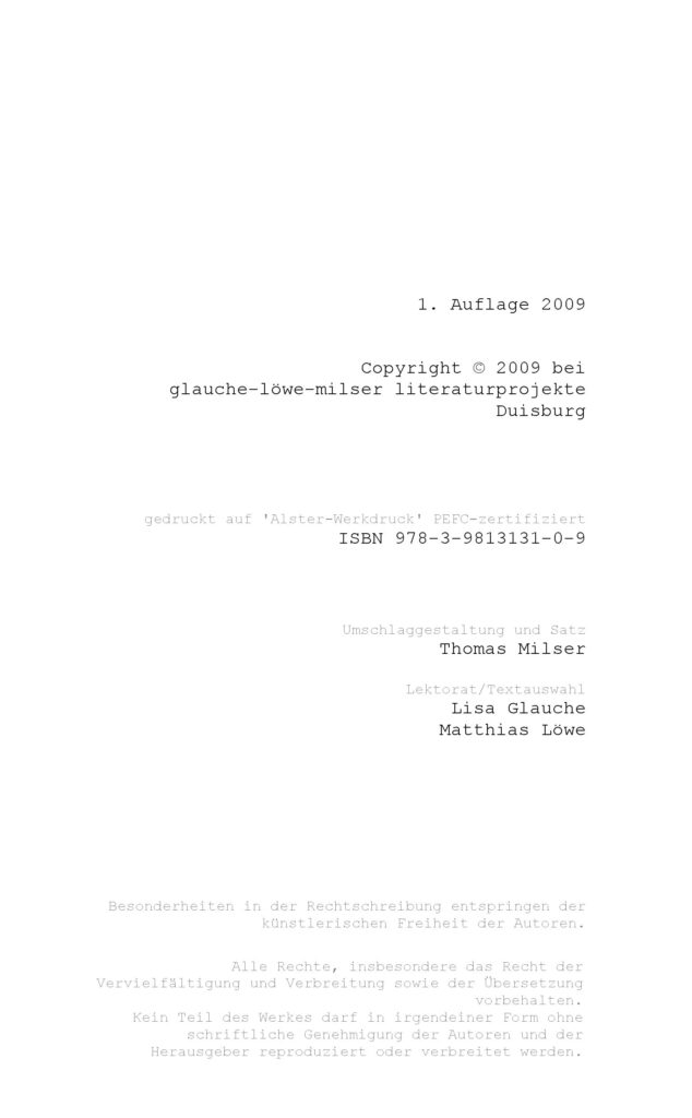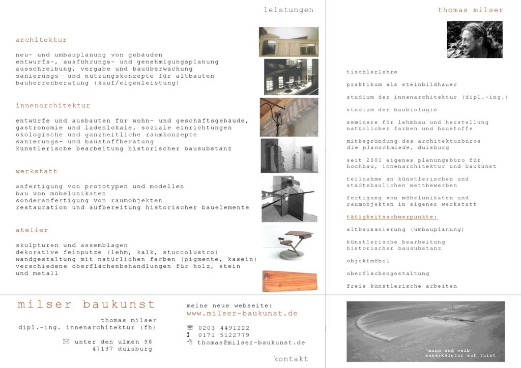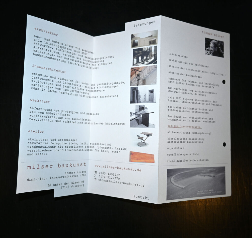 DTP (Desktop Publishing) Logo-Entwicklung / Corporate Design Entwicklung Logo / Briefpapier fürZentrum für Strukturforschung e.V. Logo fürVerein Lebendiges Hochfeld e.V. Logo-Entwurf undWebseitengestaltung für Thomas Oberländerwww.jfrog.de (sieht heute anders aus, aber das Logo gibts noch) Entwurf und Herstellung eines Faltblattes fürmilser baukunst Fertiges Faltblattmit ausgeschnittenen Registern(Handarbeit) Buch- und Covergestaltung Umschlag- und SeitengestaltungTypografie und TextsatzErstellen der DruckvorlageLektorateigene Texte anthologie blauer salon Gestaltung eines CD-Inlays(eigene Photographie) crytonä – no silence (1987)whispering death (1982) (eigene Bands, E-Gitarre)kann man hier hören Gestaltung einer Pavillon-Plane (8,65 * 1,60 m)– Motto "altdeutsches Wohnzimmer" – für Popup-Kreativ-Café"Begegnung und Kreativität im öffentlichen Raum"articipate – art spaces under the rhinebow Photographie, PhotoshopEntwurf und Erstellung der Druckvorlage