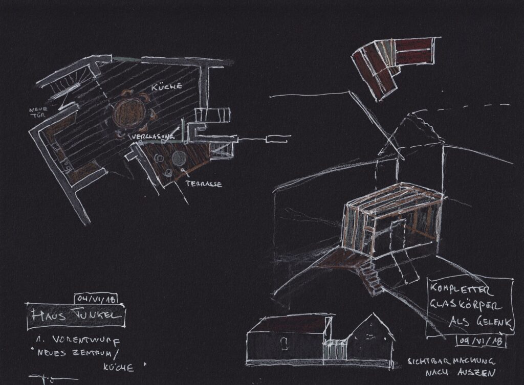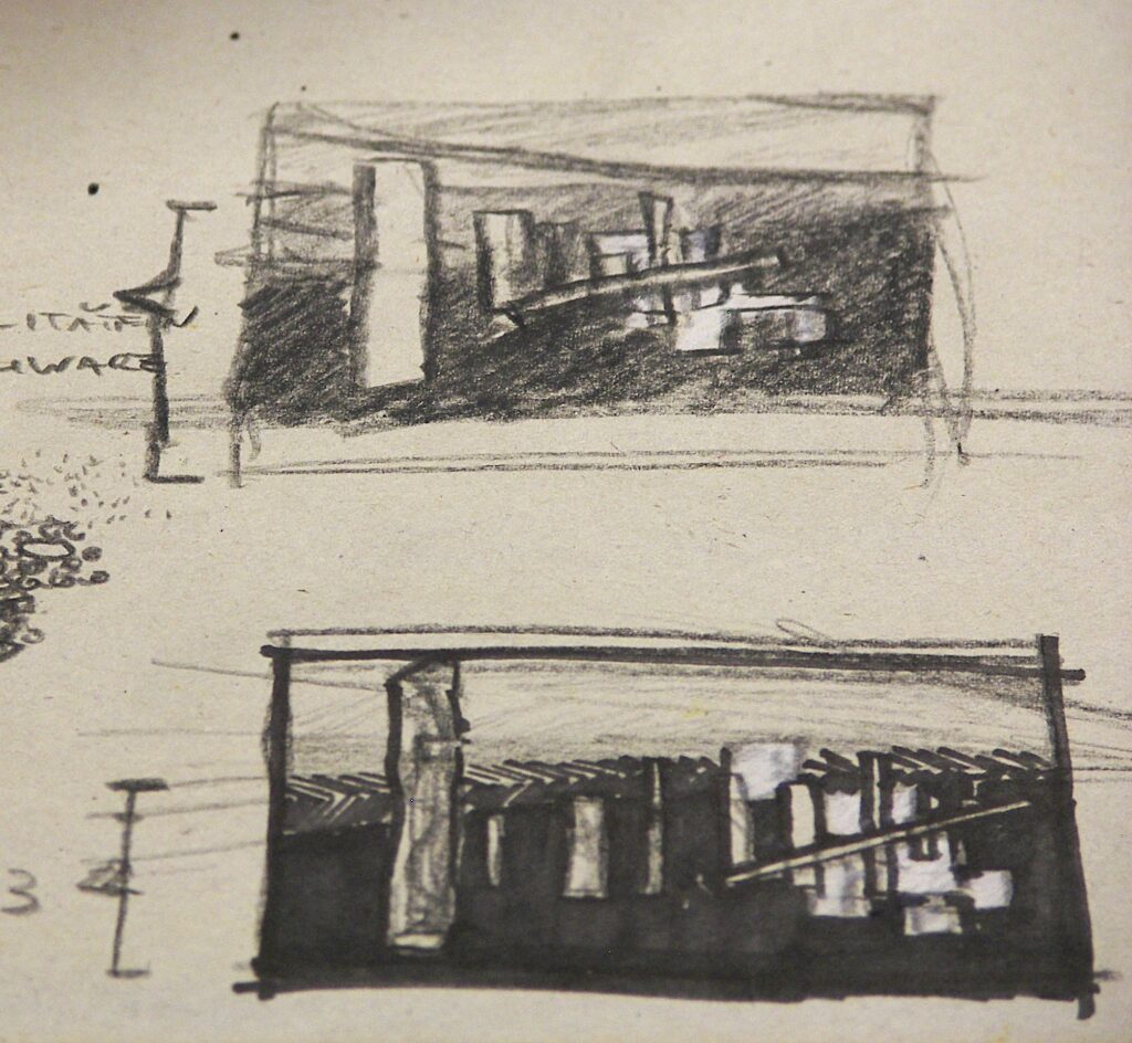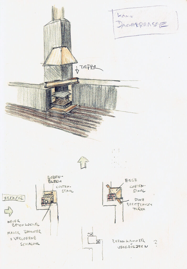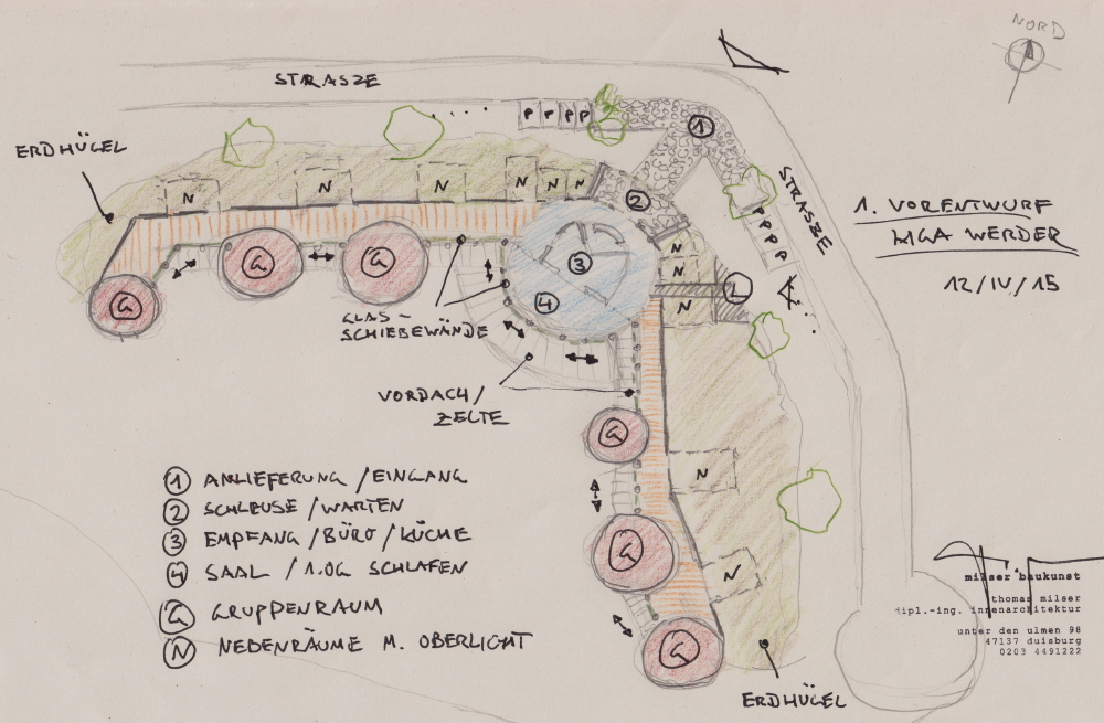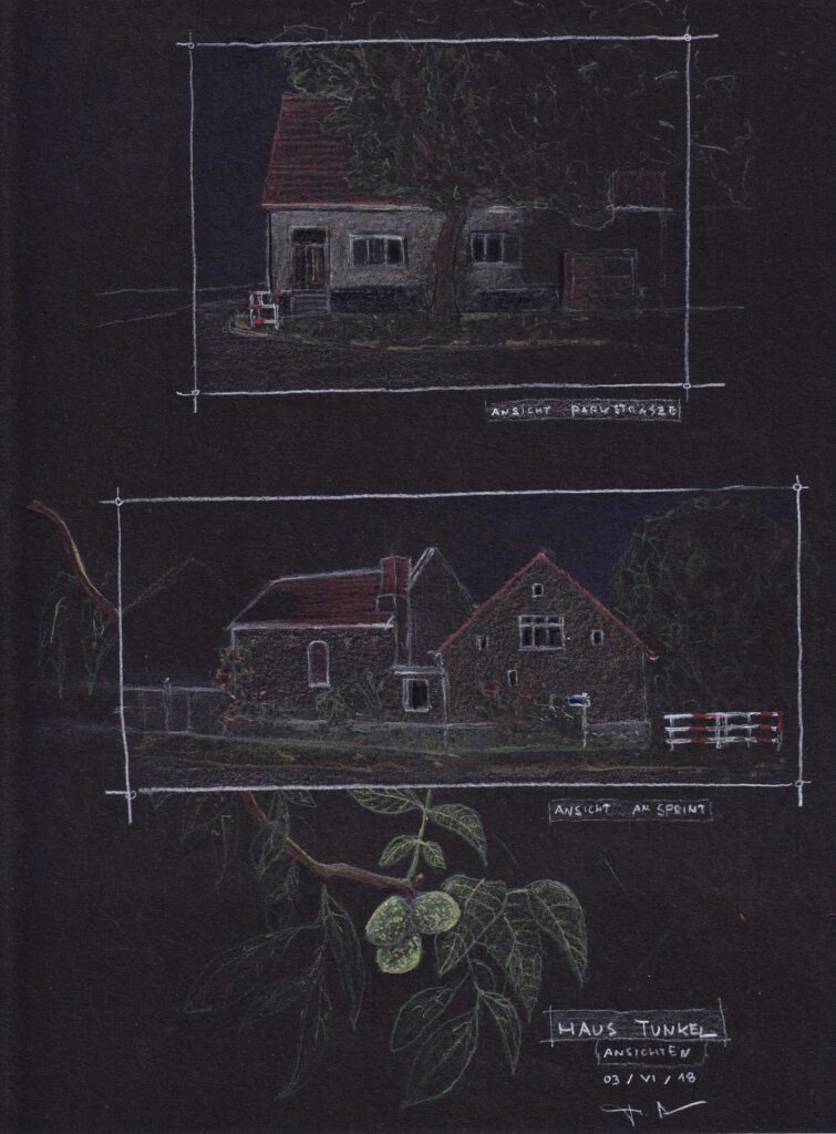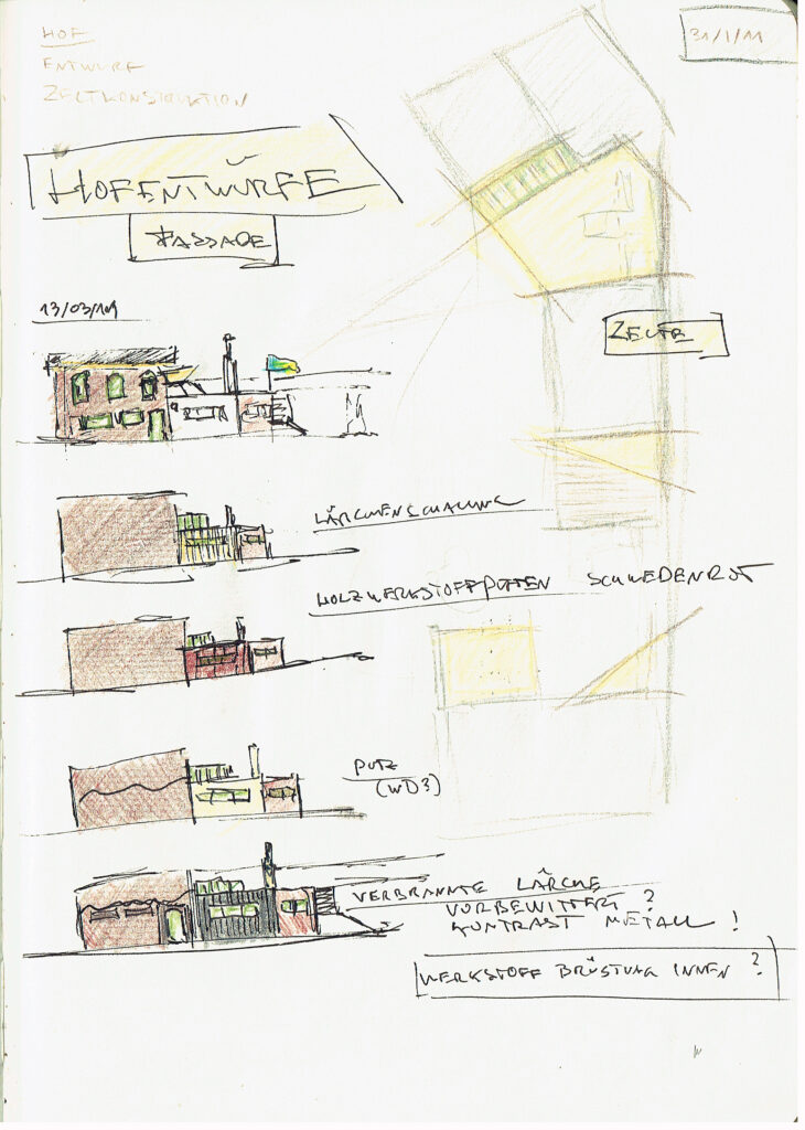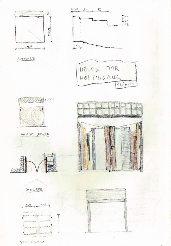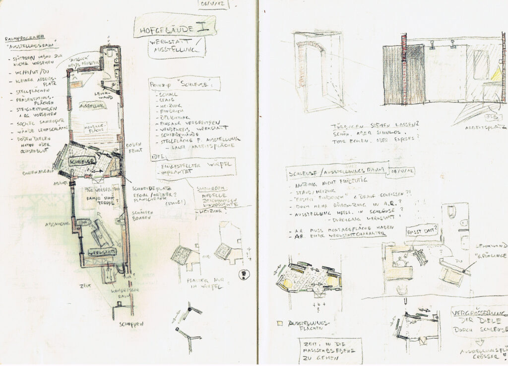 Entwurfsskizzen Wohngebäude Parkstraße/Am Sprint(Gottsdorf – Nuthe/Urstromtal) rechts:Bestandsaufnahme (2018)Freihandskizze Buntstift auf schwarzem Karton (ca. DIN A4) unten:Entwurfszeichnungen (2018)Freihandskizze Buntstift auf schwarzem Karton (ca. DIN A4) Selbstbildnis mit Pflug (2002)Hinterhof in Duisburg-Meiderich Entwurfsskizze für eine Skulptur (2002)Marker auf Transparentpapier Vollständige Dokumenation:>> zur Projektseite Lanzarote I-III Triptychon (3,60 * 1,20 m) Entwurfsskizzen für ein dreiteiliges Relief aus Fundstücken, div. Sanden und Erden (1996/2018)) Vorskizzen Bunstift, Kohle und Pastellkreide Vollständige Dokumenation:>> zur Projektseite Stadtmöblierung (2018)Entwurfsskizzen für ein multifunktionales Beton-Element Bunstift auf schwarzem Karton Vollständige Dokumenation:>> zur Projektseite Hofgebäude 1 Hinterhof in Duisburg-MeiderichWerkstatt / Atelier (eigengenutzt) Diverse Entwurfsskizzen (2012)Skizzenbuch ca. DIN A4,Papier naturfarben, Buntstift Waldorf-Kindergarten Werder (Havel)Vom Entwurfsgedanken zum Grundriss Fortlaufende Entwurfsskizzen (2015)Verschiedene Papiere und Techniken Grundlage: Amtlicher Bebauungsplan >>